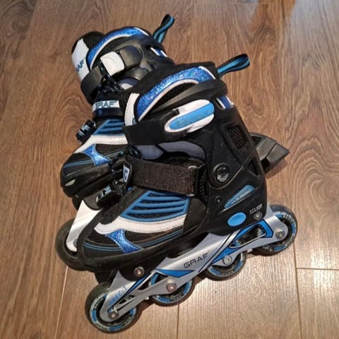 Mukavat ja säädettävät alumiinirunkoiset rullaluistimet. Täydelliset aloittelijoille. Voidaan säätää viiteen eri kokoon.Graph Adjustable Inline Skate JR-22/23 voidaan säätää viiteen eri kokoon, mikä pidentää luistimien käyttöikää. Luistimissa on alumiinirunko.Kenkäosa on hengittävää verkkomateriaalia, jonka ansiosta luistimet ovat hengittävät luistelun aikana. Koko-opas:- S (29-33, 70x24 mm)- M (33-37, 72x24 mm)- L (37-41, 76x24 mm)Tuotetiedot:- Materiaali, kenkäosa: Verkkomateriaalia- Runko: Alumiinia- Laakerit: ABEC 7 hiilikuitua