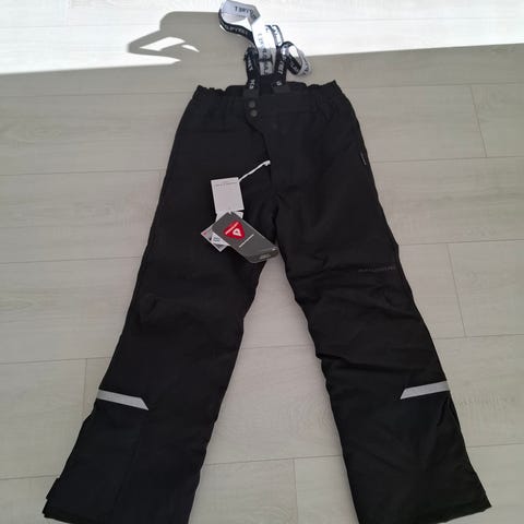 Pop WeatherPRO lasten toppahousut, koko 140 cm, väri musta. Housuissa on säädettävät ja irrotettavat henkselit, joustava ja napeilla säädettävä vyötärö ja lumilukkt ja heijastimet lahkeissa. Nimikointitarra lähtenyt pesussa.