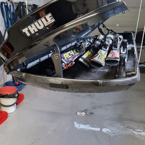 Aerodynaaminen, siistikuntoinen ja ehjä suksiboksi myydään. Helppo PowerClick-pikakiinnitys.