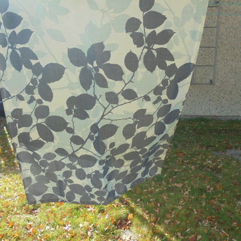 Uuden veroinen valkea valoverho. Tanko kuja ja ala osa kaareva.