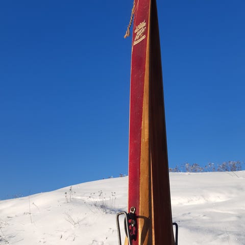 Järviset puusukset metallisilla siteillä. Suksissa perinteinen jalkalenkkiside, jossa metallinen pohjalevy ja vaijeri jalan ympärille. Sukset sopivat esimerkiksi perinteiseen hiihtoon ja ennen kaikkea rekvisiitaksi.