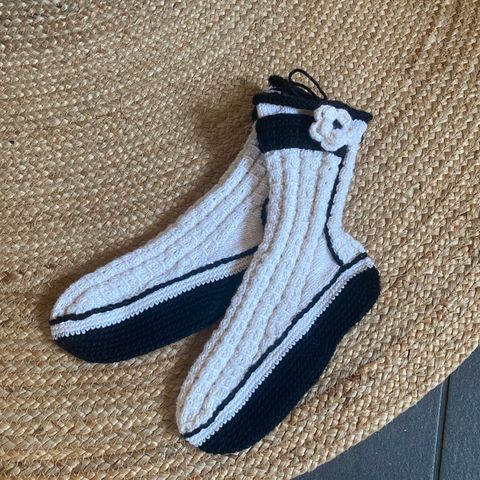 Lyhytvartiset villasukat, koko 41. Pohjissa liukuesteet, leveällä lestillä. Ikäihmiselle ihanteelliset.