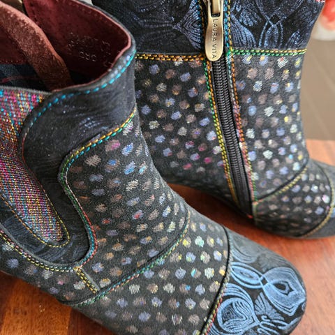 Kuviolliset kauniit Laura Vita-merkkiset kengät sifonkinauhoilla kokoa 38. Ehjät ja siistissä käytetyssä kunnossa.