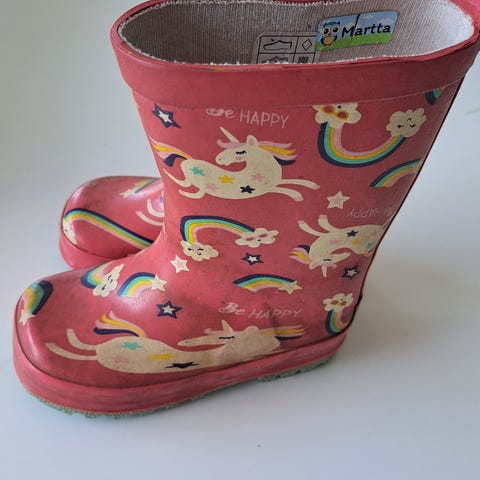 Myydään siistikuntoiset lasten talvikumisaappaat, koko 24. Lämmin vuori sisäpuolella. Jämäkät, kestävät saappaat.