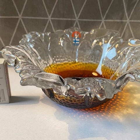 Ruskea Humppilan lasikulho, muotoilija Pertti Santalahti, kork.16 cm.halk.16cm. Vain nouto, käteisellä!