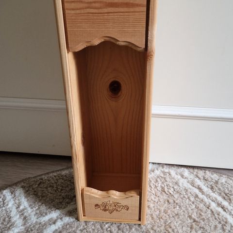 Puusta tehty, löysin käytettynä niin en ole itse tehnyt. Pienikokoinen 7cm korkea, 8 cm syvä ja 10,5 cm leveä.