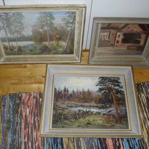 Noudan pk seudulla vanhoja tauluja kehyksineen taideprojektiin
