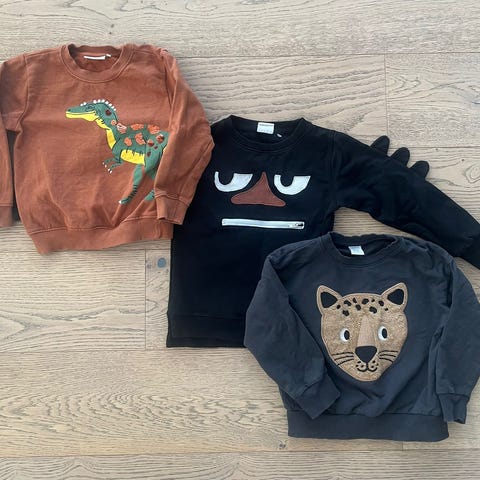 Heväsdä kunnossa Marks & Spencer lasten collegeasu dinosauruskuviolla. Koko 104.Materiaali puuvillaa.