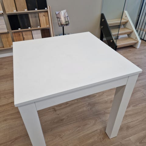Pöydän reunassa ja pinnassa näkyy kulumaa ja pieniä jälkiä, jotka on hyvä huomioida. Materiaali puuta jonka päällä on maali- tai lakkapinta. Pöydässä on jo itsessään puun elämisen jälkiä.