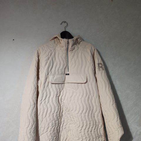 R-Collection anorakki takki naisille. Koko XS. Väri valkoinen. Materiaali puuvilla. Mallissa on hupullinen kaulus, etupuolella vetoketjullinen halkio ja suuri etutasku läpällä. Helmassa on kiristysnyöri ja hihoissa napilliset säätömansetit. Melkein pitämättömäksi jäänyt upea anorakki.