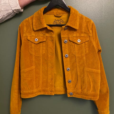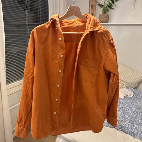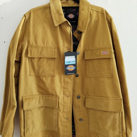 Dickies takki / paitapusero, koko L. Oranssi samettinen (vakosametti) takki, jossa edessä napitus ja kaksi suurta etutaskua. Suora malli, pitkät hihat ja kaulus. Sopii arkeen ja kerrospukeutumiseen viileämpiin päiviin.