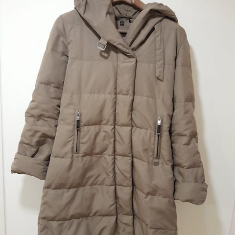 Joutsen muhkea untuvatakki koko S/M tummanruskea, vyöllä tai ilman