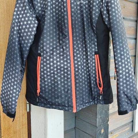 Kerran pesty takki, johon en löydä huppua. Toinen hihansuu rikki ja pieni reikä hihassa. Näkyy kuvissa ja huomioitu hinnassa.