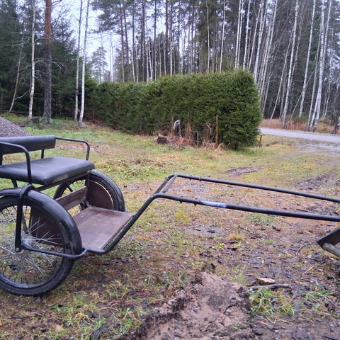 Myydään laadukkaat ja kevyet kärryt valjaiden kera. Pehmusteet ja selkänoja tarjoavat tasaiset kyydit. Ollut käytössä 107cm korkealla shetlanninponilla. Ei pikalukko versio. 650e