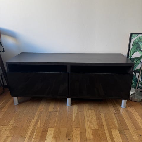 Ikean TV-taso. Hyvässä kunnossa, ei merkittäviä käytön jälkiä. Kaksi avohyllyä ja 2 vetolaatikkoa.