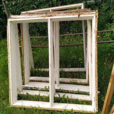 1230 korkea ja 1730 leveä. Vasen ja oikea kätiset. Noin 2000 vuodelta. Pientä käytön jälkeä löytyy. Puukarmit ja puitteet, ulkoa muovia. Karmisyvyys 175mm.
