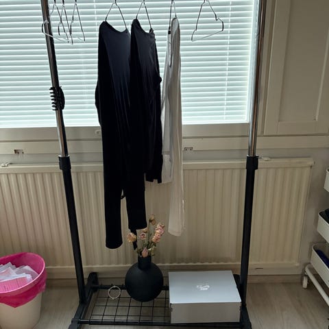 Myydään hyväkuntoinen Jyskin musta vaaterekki.