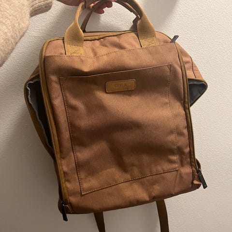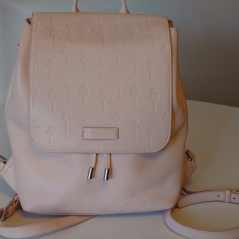 Golla reppu muusta materiaalista. Repussa on koristeellinen painokuvio etupuolella ja pehmustettu selkäosa sekä olkahihnat. Sisäosa on oranssi ja sisältää useita lokeroita ja vetoketjutaskuja, jotka soveltuvat esimerkiksi pientarvikkeiden ja mahdollisen kannettavan tietokoneen tai tabletin kuljettamiseen. Reppu sopii yleiskäyttöön arkeen ja vapaa-aikaan.