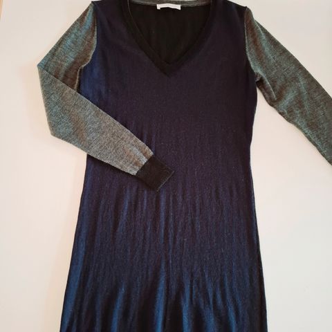 Lindex khakinvihreä neulemekko 100% villaa (merino). Materiaali laadukasta, tiivistä ja hieman paksumpaa. Lyhyt ja vain hieman helmaan levenevä malli, väljät hieman vajaamittaiset hihat