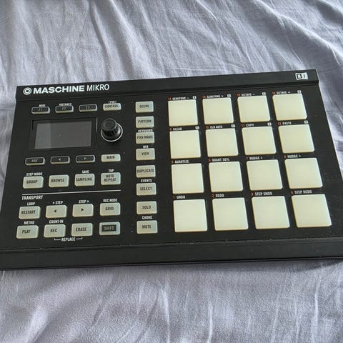 Myydään kompakti samplerityöasema biittien tekoon. Maschine Mikro MK3 on virtaviivaistettu versio isoveljestään: se mahtuu helposti repussa läppärin kaveriksi, mutta siinä on silti samat isot ja laadukkaat padit (RGB-valoilla).