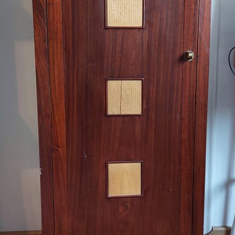 Kotimainen Billnäs pikku kaappi myytävänä. Yleiskunto hyvä. Muutamia kuvan mukaisia naarmuja kannessa. Koostuu kolmesta osasta. Sisusta siisti eikä ole hajuja. Kaapin ovi hieman kiero.