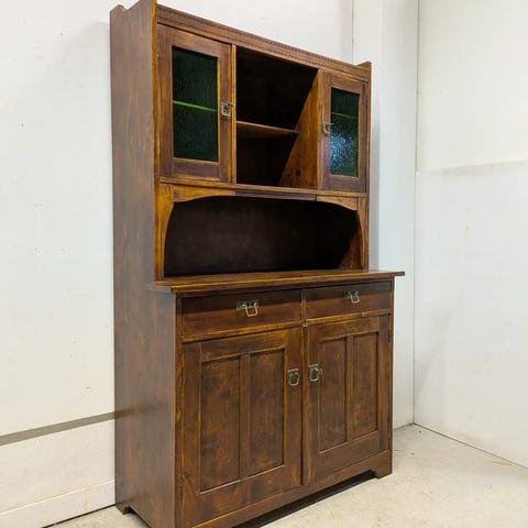 Jugend tyylin puinen astiakaappi / keittiökaappi uuteen kotiin. Yleiskunto ikäisekseen hyvä. Ulkopinnat aikanaan kunnostettu. Lukot toimivat ovissa ja avaimet tallessa. Yläosa kiinteä. Yksi vedin uusittu. Ei hajuja.