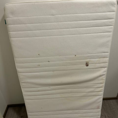 IKEA Åsvang patja. Valkoinen, tikattu päällinen. Sopii käytettäväksi sängyn patjana tai lisäpatjana. Päällinen on vetoketjullinen, mikä helpottaa irrottamista ja tuulettamista. Kuvissa näkyy värjäymä patjan pinnassa. Ollut 8v lapsella käytössä parvisängyssä, noin 2.5 vuotta vanha patja pieniä käytön jälkiä, pesty tekstiili pesurilla :) myydään muuton vuoksi pois.