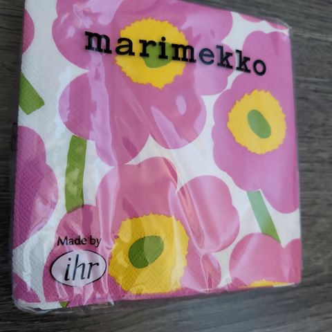 Marimekko servetit punaisella kuviolla. Neliönmuotoiset paperiservetit sopivat kattauksiin, juhliin ja arkeen. Pakkauksessa on 20 kpl samanlaisia servettejä, joissa toistuva pyöreä kuvio (riepumatto) ja Marimekko-logo etupuolella. Koko 12 x 12 cm. Yhden pakkauksen hinta 3 euroa. Näitä löytyy useampi pakkaus. Voin lähettää. Mmm.