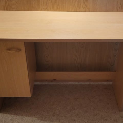 Kirjoituspöytä / työpöytä lapselle. Leveys 120cm, syvyys 50cm ja korkeus 72cm. Materiaali puuta ja tukevaa lastulevyä (ei ikean pahvia).