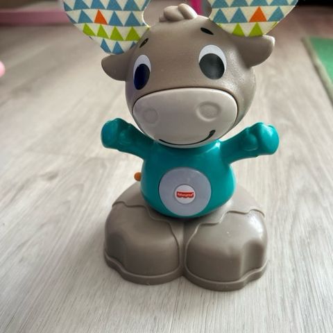 Puinen hirvi ja muovinen ankka. Ankka vaappuu puolelta toiselle, kun sitä vetää narusta.