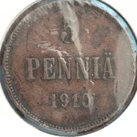 Myynnissä kuvan 10 pennin kolikko vuodelta 1910.