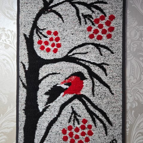 Koskisen Kutomo Ky kotimainen vintage seinävaate. Kielot. Ihana väri! Pituus noin 68 cm ja leveys noin 40 cm. Ehjä kuvien mukainen kunto.