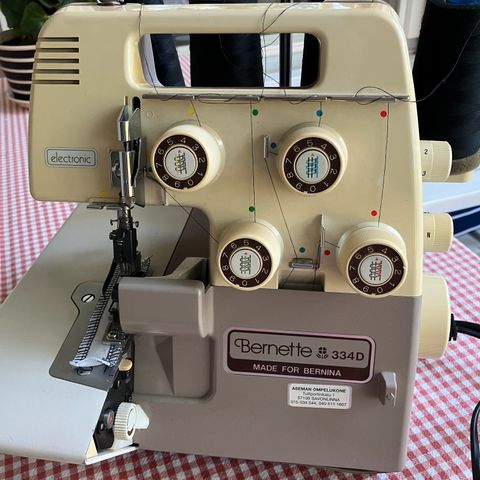 Sveitsiläistä laatua BERNETTE 334D saumuri, Japanissa valmistettu. Siistikuntoinen, huollettu, valmiiksi langoitettu ja koeommeltu.
