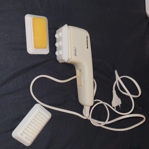 Myydään hierontalaite jossa 5 erilaista vaihtopäätä. Kuvissa lisätietoja kuvina ohjekirjasta