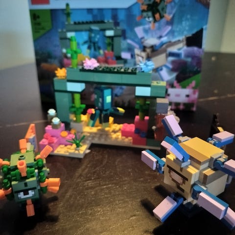 Myynnissä Minecraft 21180 The Guardian Battle. Kaikki osat, ohjeet ja hahmot löytyvät hyväkuntoisina. Kuvissa oleva vihreä puskapala on väärä, mutta korvattu oikealla.
