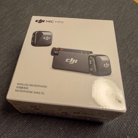 DJI Mic mini langaton mikrofonijärjestelmä. Pakettiin kuuluu langaton lähetin ja vastaanotin, säilytyspussi, tuulisuoja (karvapallo), kaapelit sekä sovittimia. Järjestelmä on tarkoitettu äänen tallentamiseen esimerkiksi kameroiden ja mobiililaitteiden kanssa. Langaton ratkaisu mahdollistaa liikkumisen tallennuksen aikana ilman kaapeliyhteyttä äänilähteen ja tallentavan laitteen välillä.
