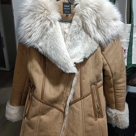 DoRose beige talvitakki tekoturkisreunuksella koko M
