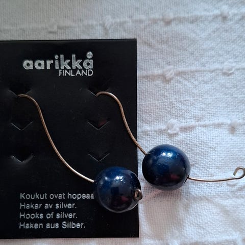 Myydään seitsemän paria korvakoruja. Kuvan ensimmäinen pari on Aarikan Marja nappikorvakorut, puuta ja hopeaa. Toinen korvakorupari on myös hopeaa. Muista korvakoruista ei varmaa tietoa niiden materiaalista. Korvakorut myydään yhtenä pakettina.