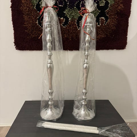 Noin METRIN korkuiset tukevat valurauta kynttilänjalat. Paino n. 14 kg kappale.!!! Erittäin harvinaiset.