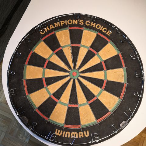 Käytetty, mutta komea puinen Darts-taulu. Tikat eivät ihan tikissä. Suljettuna leveys n. 53, korkeus korkeimmasta kohdasta n. 80 cm. Avattuna leveys n. 106 cm.