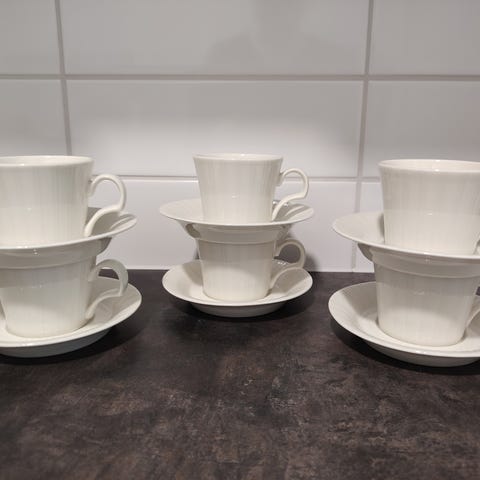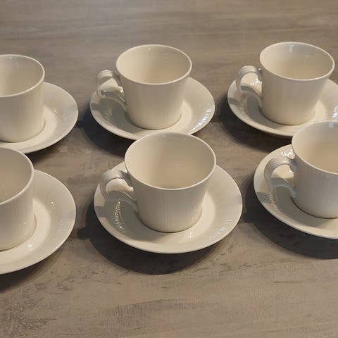 Uudenveroiset 6kpl kahvikuppia alustautasineen kermakko ja 2 sokerikkoa.Nouto Kiimingin Huttukylästä