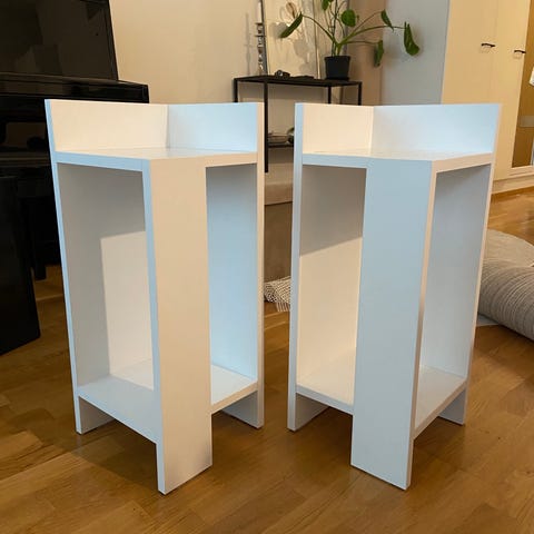 Tästä pikkuiset yöpöydät tai mitkä vaan pöydät seuraavalle. 2kpl 20€ HM homesta ostettu