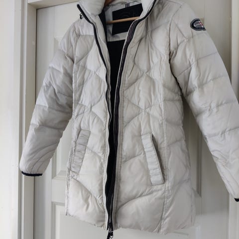 Torstain untuvatakki. Koko: 38. Puuttuu taskuista napit ja toisesta olkatampista. Pesty, mutta vaatii uusinta pesun ja kuivatuksen kuivausrummussa. Untuvat jostain kohdin vähän paakkuuntuneet.