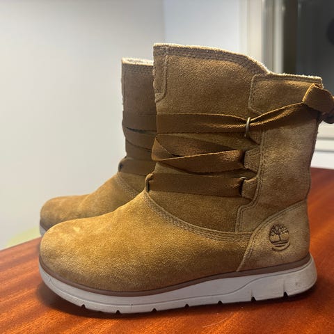 Timberland talvikengät, koko 37. Ruskeat, nahkaiset varrelliset kengät, joissa on lämmin karvavuori sisällä. Paksu ja kuvioitu kumipohja tarjoaa pitoa talvikeleille. Vetolenkit varressa helpottaa pukemista. Lämpimät kengät kylmiin talvipäiviin.