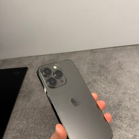 Erinomaisessa kunnossa oleva iPhone 13 Pro väri Appine Green. Akku 100%