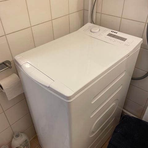 Lähes uusi, vähän käytetty, täysin toimiva 6 kg päältätäytettävä pyykinpesukone, mahtuu hyvin pienempäänkin pesuhuoneeseen.