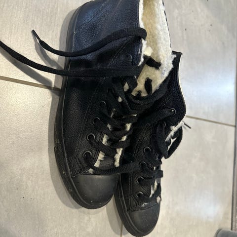 Converse hyväkuntoiset unisex tummanharmaat nahkatennarit karvavuorella.