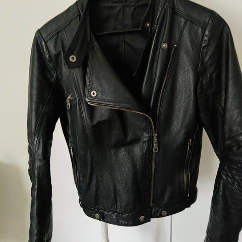 Nahkatakki. Hyväkuntoinen, vuorillinen, toimivat hyvät vetoketjut, povitaskulla.