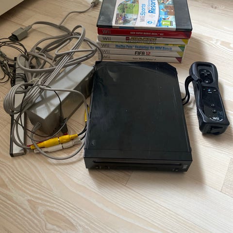 Nintendo Wii pelikonsoli valkoinen ohjaimilla ja peleillä
