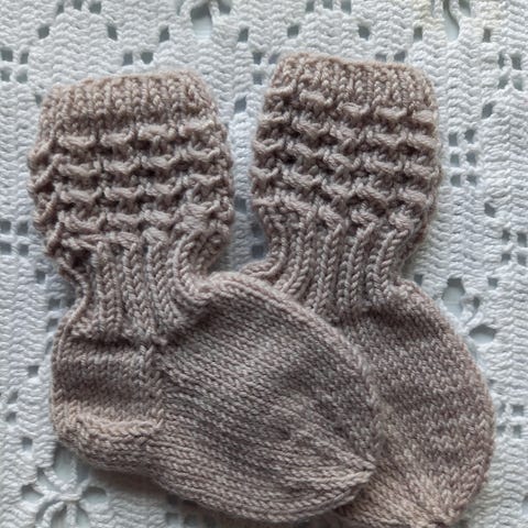 Dropsin merino extra fine-langasta neulotut hiiri-sukat ja peukalottomat tumput.